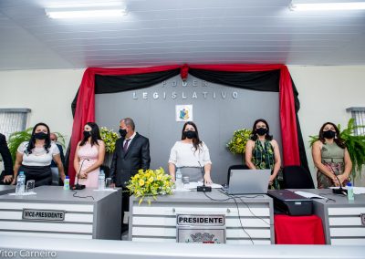 Mesa composta pela Presidente eleita Iorides de Oliveira, Vice-Presidente Aline Neves Paiva, Secretária Katiene Martins de Almeida, Suplente de Secretária Maria Claudete Garcia Paiva Prefeito Municipal e sua esposa, Vice-Prefeita, Vereadores e demais autoridades.