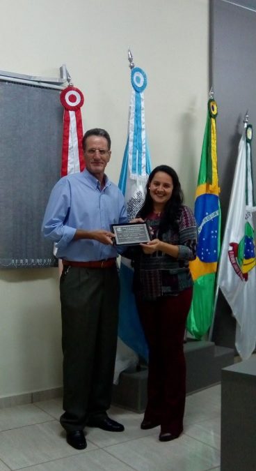 Ex Presidente Paulo Henrique Pereira recebendo a Placa de Homenagem da Presidente da Câmara Aline Neves Paiva