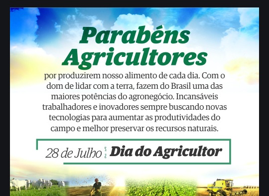 Nossa homenagem a todos os agricultores, que com muito suor e dedicação plantam a prosperidade do nosso PAÍS, CÂMARA MUNICIPAL DE TURVOLÂNDIA – MG.