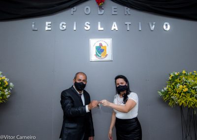 Vice -Presidente da Câmara Municipal Aline Neves Paiva entregando a chave da Prefeitura Municipal ao Prefeito Municipal José Nelson Martins.