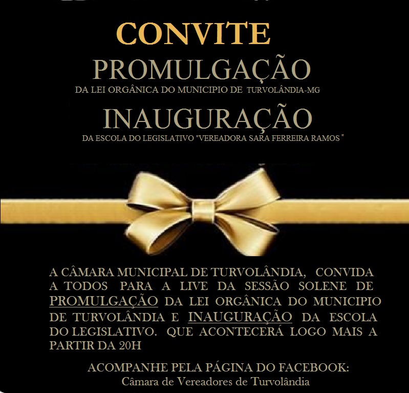 CONVITE -Promulgação da Lei Orgânica do Município E Inauguração da Escola do Legislativo” Vereadora Sara Ferreira Ramos”