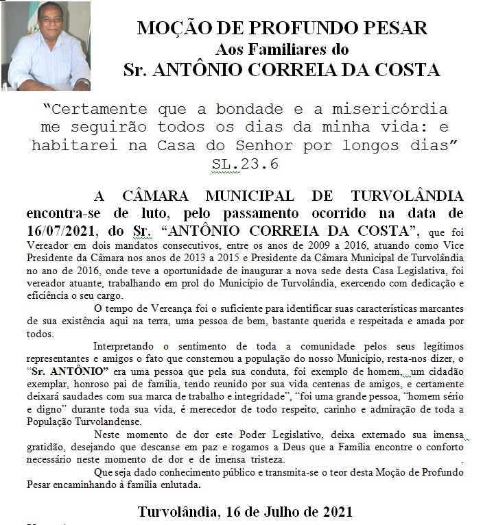 MOÇÃO DE PESAR - ANTÔNIO CORREIA DA COSTA