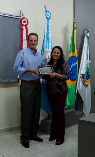 Ex Presidente Paulo Henrique Pereira recebendo a Placa de Homenagem da Presidente da Câmara Aline Neves Paiva