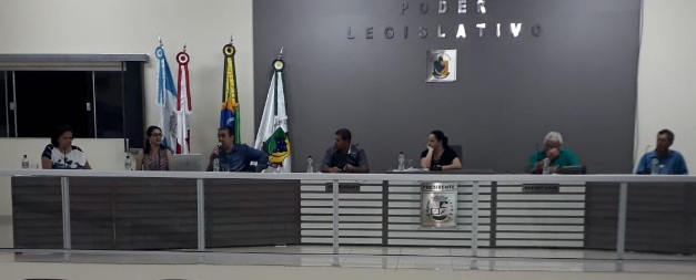 Márcia e Neiva (Contadoras), da Prefeitura Municipal, Prefeito Elivelto, Vice-Prefeito Luiz, Vereadora Aline e Presidente da Comissão de Finanças e Orçamento, David Relator da Comissão e Adeneval Membro da comissão.